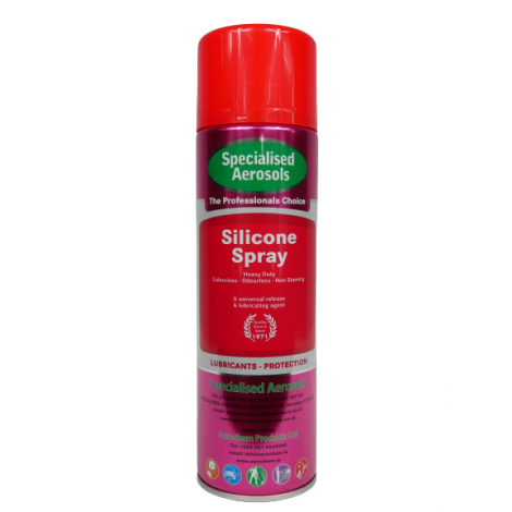 Silicone Spray is a universal release agent which is temperature stable in excess of 300'C It is colourless, economical, non-toxic, odourless, safe on stainless steel. Ideal for use in baking, bottling plants, carpentry, dairy, double glazing, food processing, garages, hospitals printing, rubber moulding industries and vending machines etc.