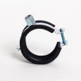 BZP Clip with EPDM rubber lining, hinged back, M8/M10 dual tapped boss captive M5 x 22 fixing screw. Max. safe working load in traction 80kg.