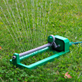 Oscillating sprinkler with snap on hose connector. 4 spray positions, covers up to 250sqm.