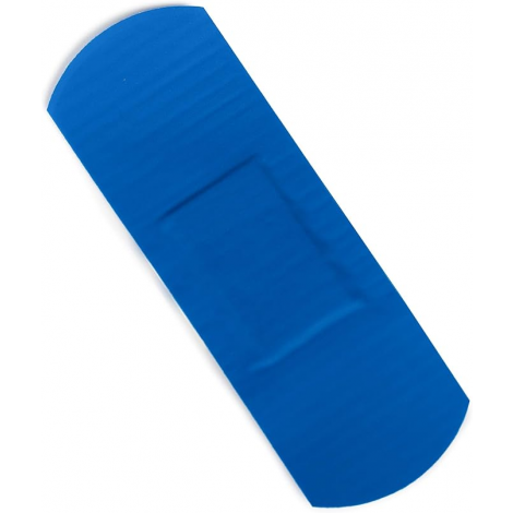 Pack of 100 plasters - 5 different sizes Strong hypoallergenic adhesive Washproof and metal detectable Individually wrapped sterile blue plasters with detectable metal strip