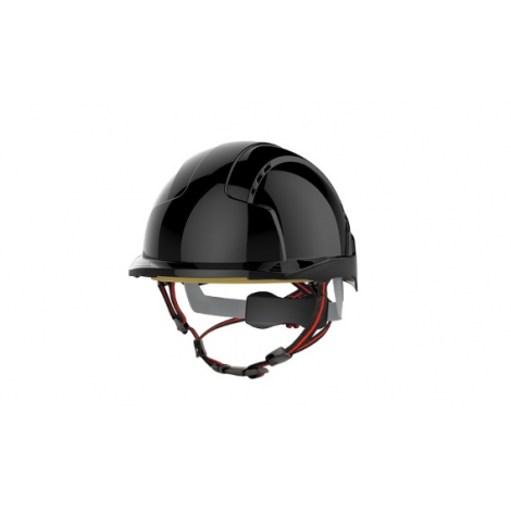 The EVOLite® Skyworker™ helmet has a suspension system and shell structure that has been designed to be used for industrial, mountaineering, rescue and leisure activities. Meeting the EN12492 standard. A helmet complying to the mountaineering standard is impact tested with two 5kg strikers. A hemispherical striker is dropped from 2 metres onto the crown of the helmet and a flat striker from 500mm on to the front, rear or side by tilting the headform to 30°. In all cases, the transmitted force through the neck of the headform must not exceed 10kN. Two penetration tests with a 3kg pointed striker are also performed within a 50mm radius of the helmet's crown without making contact with the headform.