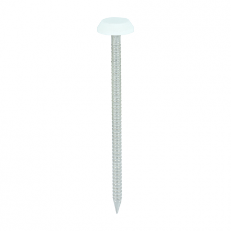 Hammered in like nails these stainless steel plastic headed nails and pins provide a very fast fixing for large boards, fascia boards, soffitt etc., in fact any ready finished material.