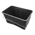 A 15 litre Plastic Paint Scuttle that can be used with all types of paint and wallpaper paste. Ribbed side assists in an even application on to the roller when used in painting applications. Strong wire handle.