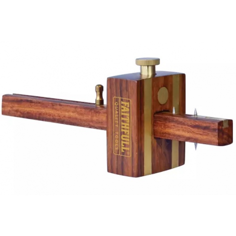 A high quality gauge made from the finest hardwood, and enhanced with brass facing plates and fittings. A nylon friction pad is fitted under the knurled brass thumbscrew to reduce wear to the stem and to ensure secure, smooth and accurate setting of the gauge.
