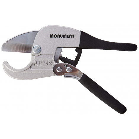 The Monument 2645 is a very effective pipe cutter for cutting PVC, polythene, MDP, HEP20 and plastic overflow. Simply place the Monument 2645 over the pipe to be cut and gently twist while you depress the handles to get a good clean cut. The MON2645 will cut pipe and rubber hoses etc. as this tool has a patented blade shape for ease of cut and a ratchet action for ease of use.<P>Maximum Pipe Size to cut 42mm.