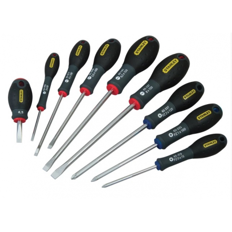 This is a 10 piece set of Stanley cushion grip screwdrivers. All the screwdrivers are corrosion resistant with high grade chrome plated steel bars for added strength and durability. This reduces the chance of tip breakage giving them a longer operation life, unlike some other screwdrivers in this class.