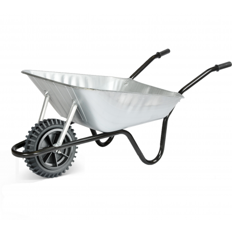 - Wide body galvanised steel pan - Galvanised steel support struts - Powder coated 30mm single piece frame with tipper nose - Solid rubber wheel with HDPP wheel centre