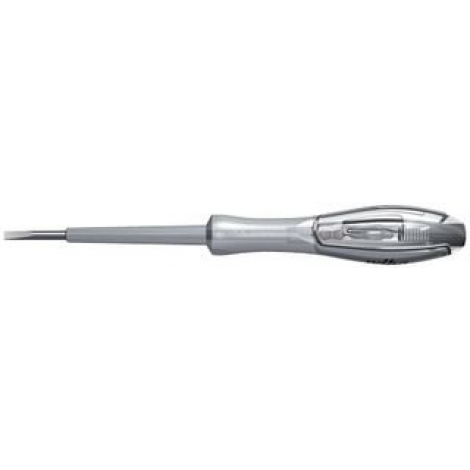 Single-pole voltage tester, 110-250 volts. Application: For all work on or around electrical components up to 1000 V AC.For determining alternating voltages in low voltage range up to 250 volts with respect to earth potential.Suitable for trade and industry professionals. Bit holder: ClicFix quick release holder securely locks bits.Only for 6 mm slimBits. Bits: High-quality chrome vanadium steel, through-hardened, bronzed.Protective insulation moulded directly onto the bit and completely integrated into the bit in the lower area. Individually tested protective insulation 1,000 V AC, VDE and GS tested. Extra: Effortless access to low-lying fastening elements. Arranged clearly in a high quality, rugged and durable bag.SoftFinish voltage tester, 110-250 volts.Tried-and-proven Wiha SoftFinish screwdriver with additional testing function.Global use is as Handle: Ergonomic Wiha SoftFinish multi-component handle with roll-off protection. Wiha SoftFinish electric multi-component handle with roll-off protection.Transparent with clip.Ergonomic Wiha SoftFinish handle of transparent, impact resistant plastic Blade: Chrome vanadium steel, through-hardened, nickel-coated.High-quality chrome-vanadium molybdenum steel, through-hardened, nickel-coated.High quality chrome-vanadium-molybdenum steel, through hardened, black-finish.Insulation moulded directly onto bl Standards: Manufactured acc. to IEC 60900:2004.Blade tip DIN ISO 2380-1.DIN ISO 8764.DIN ISO 2380.