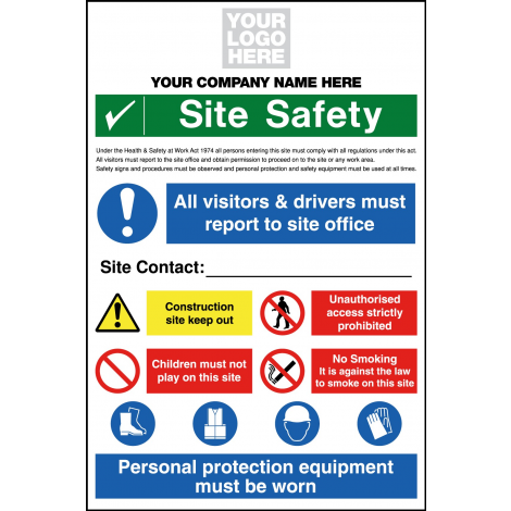 Site Safety Sign C/w Company Name & Logo 800x1200mm Correx