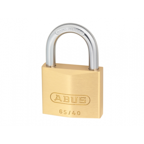 The ABUS 65 Series Brass Padlocks have a solid brass body and a hardened steel shackle with NANO PROTECT™ coating. The inner components are made from non-corrosive materials. The precision pin cylinder has mushroom counter pins with the paracentric key-way offering greater protection against manipulation. Automatic locking mechanism.