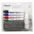 Contents: 1 x Rexel Whiteboard Starter Kit, Four Markers, Cleaner and Eraser, 1903798