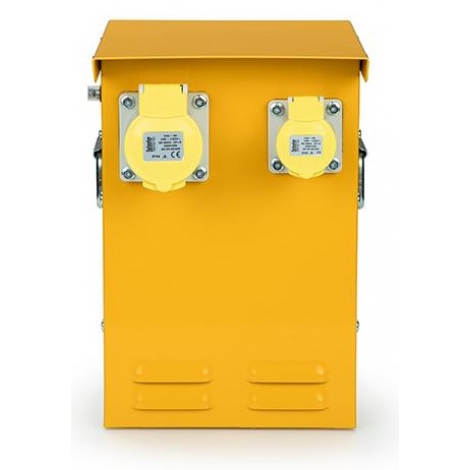 · Robust powder-coated metal casing with 16A & 32A outlets · Resettable overload protection · Centre-tapped to earth for extra safety · For use with 110V heaters, dehumidifiers & site lights