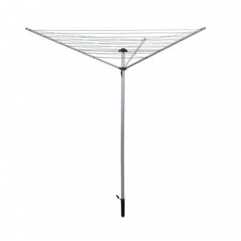 3 arm rotary clothes airer. Made from silver grey powder coated steel and provides up to 30m of drying space. Ground socket included