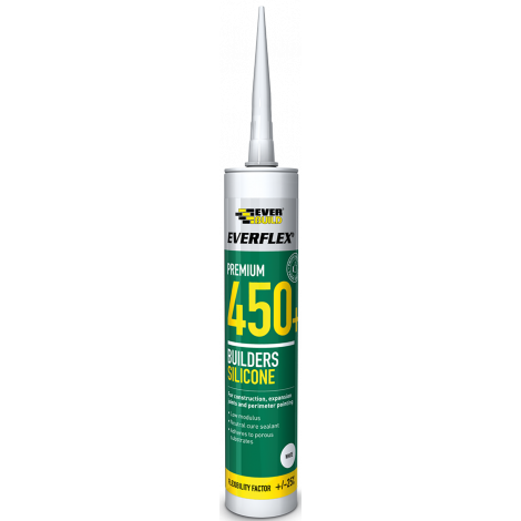 Everflex Premium+ 450 Builders Silicone is a premium quality low modulus non-corrosive neutral cure silicone sealant that adheres to virtually all substrates, both porous and non-porous. Typically used for construction expansion joints and perimeter pointing of all types of door and window frames.