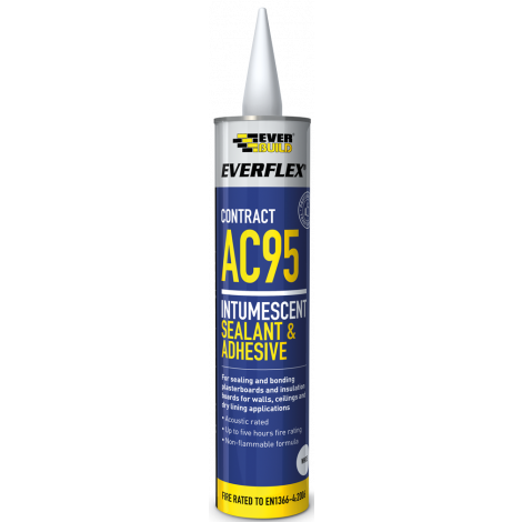 AC95 Acoustic Sealant & Adhesive is an intumescent acrylic sealant and adhesive specifically formulated for fire rated sealing and bonding applications on plasterboard and other kraft lined insulation boards. Provides up to 5 hours fire resistance, tested to BS 476, part 20/EN1366-4 (2006). Acoustic rated to BS EN ISO 140/3. Tested for air permeability to EN13141-1 Ventilation for buildings. Performance testing for components/products for residential ventilation.