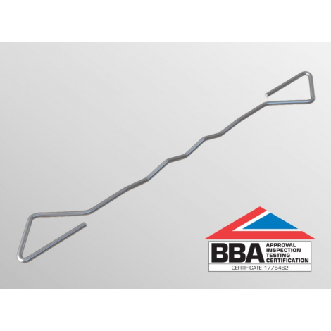 Symmetrical wall tie classed as a type 4 light duty housing tie, used to connect two leaves of a cavity wall.