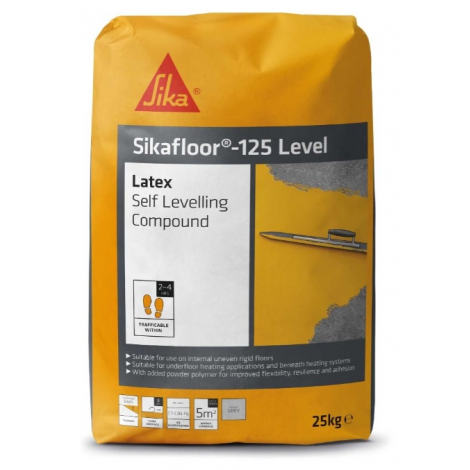 Sikafloor 125 Level Latex Self Levelling Compound is a ready to use latex modified smoothing and levelling compound for advanced flexibility and resilience. It is suitable for smoothing and levelling uneven rigid internal floors prior to applying final wearing coverings. Along with underfloor heating applications beneath heating systems.