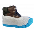 They have a blue CPE coating on the sole and a white non-woven Polypropylene upper.