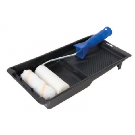Acrylic Includes mini paint roller frame, mini roller tray, foam roller sleeve for gloss and varnish, and medium pile polyamide roller sleeve for emulsion.