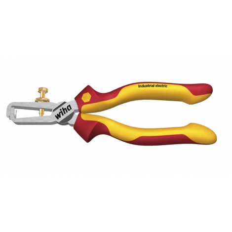 Stripping pliers Professional electric. Application: Simple stripping of cables and strands of up to 5 mm/ 10 mm conductor cross-section.For all work on or around electrical components up to 1000 V AC. Design: An easy to use adjusting screw allows the stripping diameter to be set.Opening spring for effortless and sensitive handling of pliers. Head shape: Precision cutting edge prism for even cutting of cable insulation. Standards: DIN ISO 5743.Manufactured acc. to IEC 60900:2004. Material: High-quality tool steel, tempered.