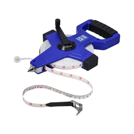 This Faithfull Fibreglass Open Long Tape comes with a 13mm wide class III blade which is marked in both imperial and metric measurements. The fibreglass tape is resistant to scuffs, stretching, is impervious to moisture and comes fitted with a folding metal end hook.