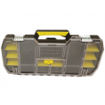 This Stanley 197514 is a good all round robust strong 24-Inch plastic tool box that will ensure safe and dry storage for tools. The 197514 tool box has tapered protection corners / stability feet, this adds for better stability, grip and a good safety feature.Constructed of strong weatherproof plastic for extra strength, the tool box has clear storage compartments on the top lid with compartment trays with movable dividers that can be moved around to suit the users storage requirements. This is combined within the tool box and is removable, allowing for extra storage capacity. The portable tote tray is designed to carry tools and small parts, yet enables large tool storage inside the tool box.The tough ergonomic soft-grip handle allows heavy loads to be carried with ease and comfort and two large metal rust proof latches will secure closing. Dimensions: 610 x 323 x 251mm.