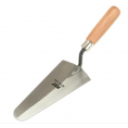 Gauging trowel with a traditional wooden handle and carbon steel blade. Used primarily for mixing and applying small quantities of cement. Size: 180mm (7in).