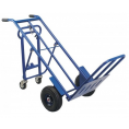 High quality tubular steel frame. The sack truck has an extra set of swivel wheels that can be lowered vertically to serve as an extra support near the handles or positioned horizontally as "drag along" truck for heavy or bulky loads. Fitted with pneumatic tyres and grips on handles. Sold loose in polybag. Maximum capacity: