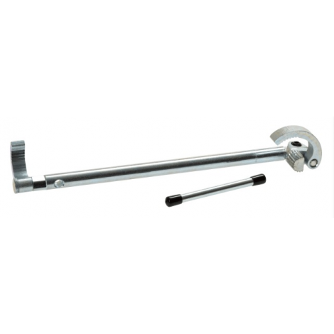 Adjustable basin wrench for use in tightening or loosening nuts in awkward positions, particularly those underneath basins or baths. The teeth on the jaws will grip uneven shapes etc. The swivelling head allows access where fixed spanners will not operate. Solid steel handle has profiled end to allow attachment of socket and extension for longer reach. Correct heat treatment of all components assures long life.
