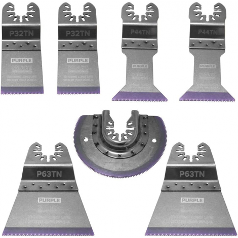 Ideal for the heavy user, this Titanium Series multi-pack has two each of the most popular multi-tool blades. Also included is an extra deep cut Titanium Series blade, adding even more versatility to the kit. Universal Bi-metal: Cuts wood, nails, screws, non-ferrous metal, plastic and more