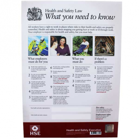 Employers have a legal duty to display the HSE health and safety law poster in every workplace.
