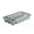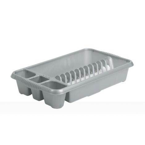 Stylish medium dish drainer, compact size for smaller spaces. Holds up to 12 plates with three handy cutlery drainer compartments. Cleverly designed with integral handles. Strong, durable and easy to maintain.
