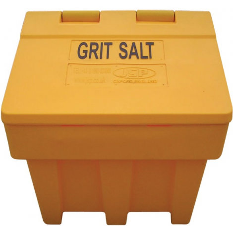 A 250kg capactiy Grit Bin made from UV stabilised HDPE of which yellow being virgin and black of re-processed material. They are available in various colour combinations which, together with the large branding area on the front section, gives you various ways of branding and personalising the bin. Moulded finger grips make the lid easy to lift whilst access points on the base make the bin convenient for lifting with a fork lift.
